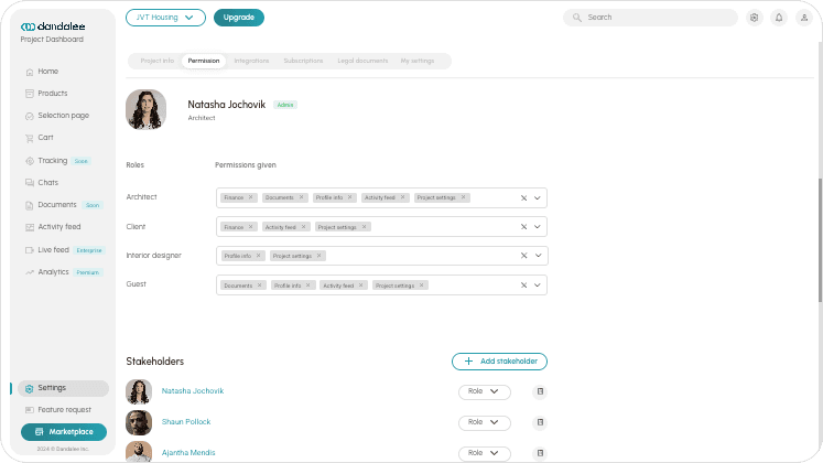 Created a stakeholder management flow to invite users, assign roles, mange access, etc.
